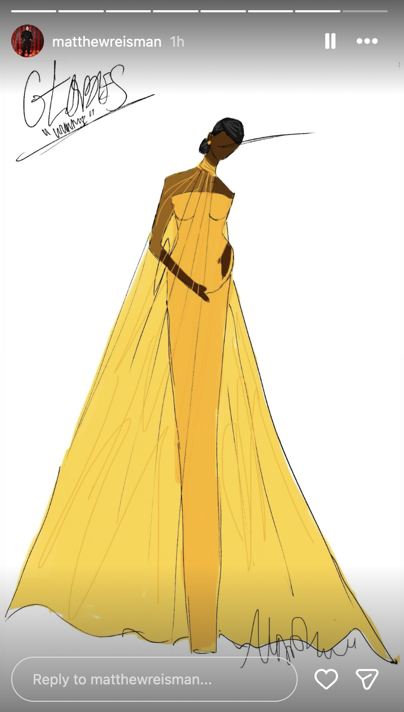 At tonight’s awards. Mosaku, 39, is wearing a sunny yellow gown custom-made by Matthew Reisman, who shared the design sketch on his Instagram story.